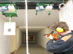 Unsere 50m Schießbahn für Kleinkaliberkurz und Kleinkaliberlang Sportwaffen mit bis zu 200 Joule zum trainieren auf 3 Seilzugbahnen. Diese Bahn ist so gebaut das hier auch für die 3 Stellungskämpfe (kniend/liegend/stehend) geübt werden kann.