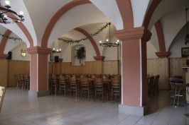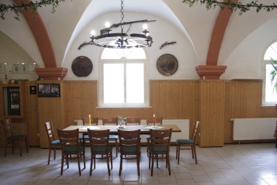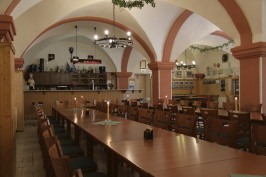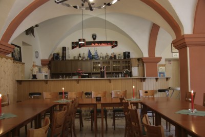 Unser Vereinsraum mit seiner wunderschönen Kreuzgewölbedecke und seinen schmiedeeisernen Kronleuchtern bietet Platz bis zu 100 Personen.